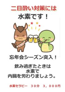 雪かき後の 腰痛や、肩こりには水素セラピー&脊椎セラピー もお勧めです!